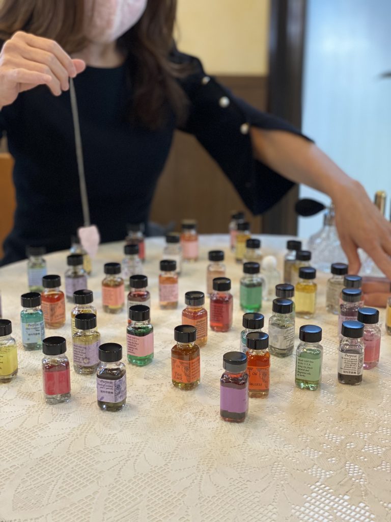 ブレンドしたオイルとアルコールを混ぜて、可愛いアトマイザーに入れてお渡しします♡