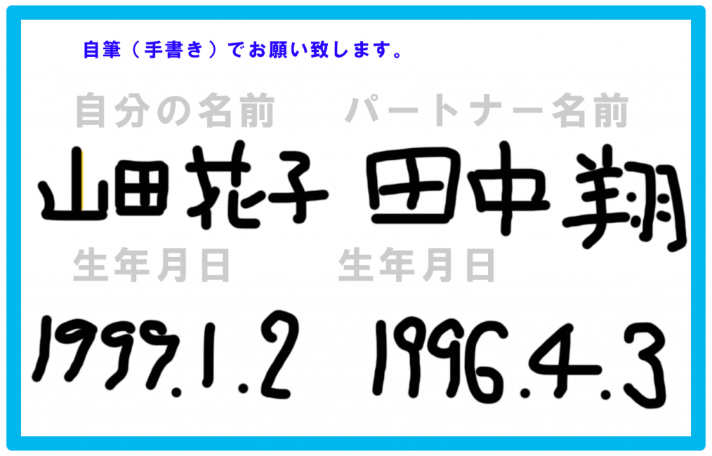 購入後メールが届きますのでそのアドレスにあなた、あなたのパートナーの生年月日と名前を書いて添付して返信ください。
